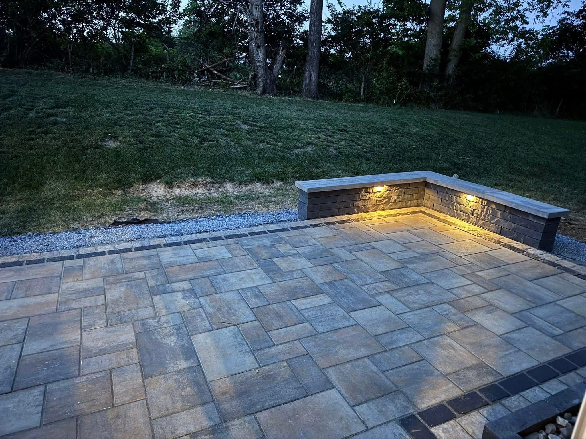 Keegan and his crew did an amazing job. I got a 6x8 patio at the bottom of my stairs to help with my dog mud situation, and they created a beautiful chevron pattern landing that fits with my deck and house style. Strongly recommend!