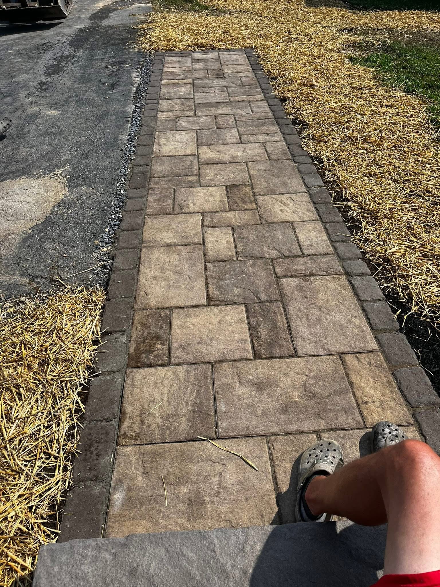 Keegan and his crew did an amazing job. I got a 6x8 patio at the bottom of my stairs to help with my dog mud situation, and they created a beautiful chevron pattern landing that fits with my deck and house style. Strongly recommend!